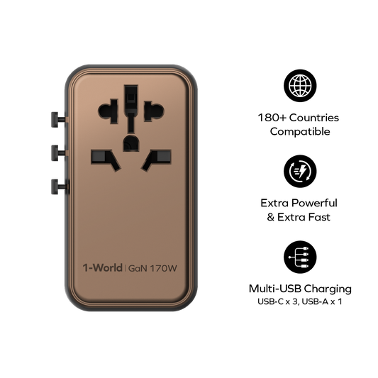 1-World 4-Port GaN Travel Charger 170W + USB-C Cable