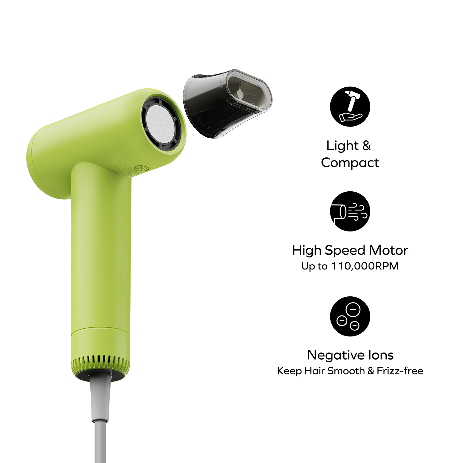• Powerful motor that dries hair super fast, up to 110,000 RPM