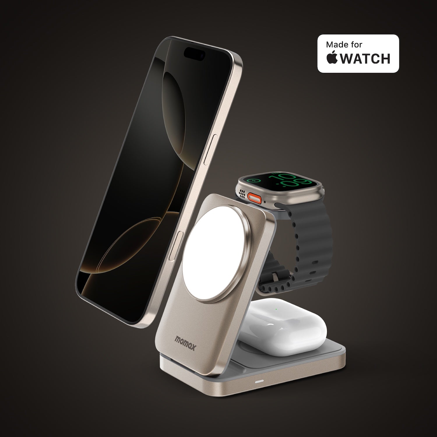 • Supports wireless charging of iPhone or Qi-compatible phone, Apple Watch, and AirPods