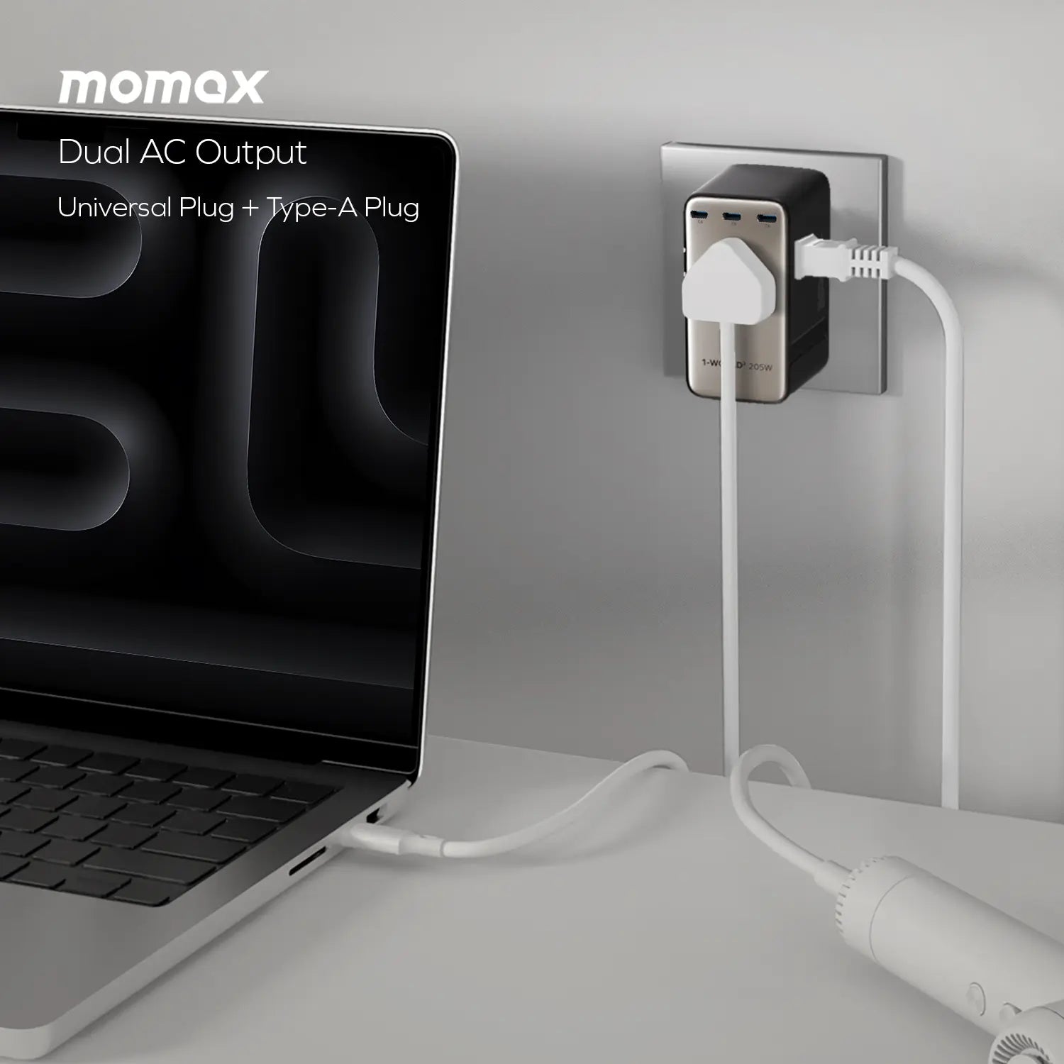 1-World² 205W 7-Port Dual AC Travel Adapter