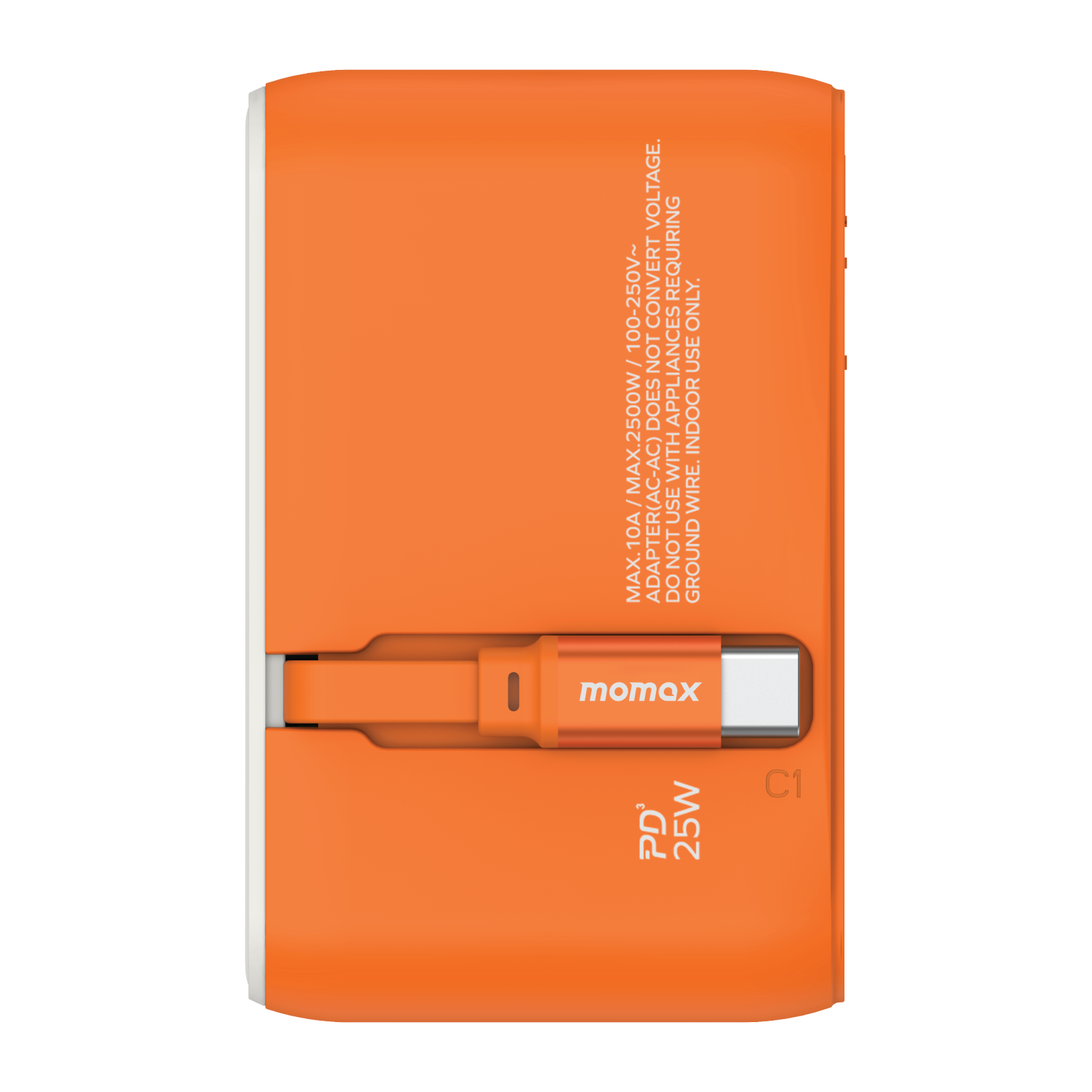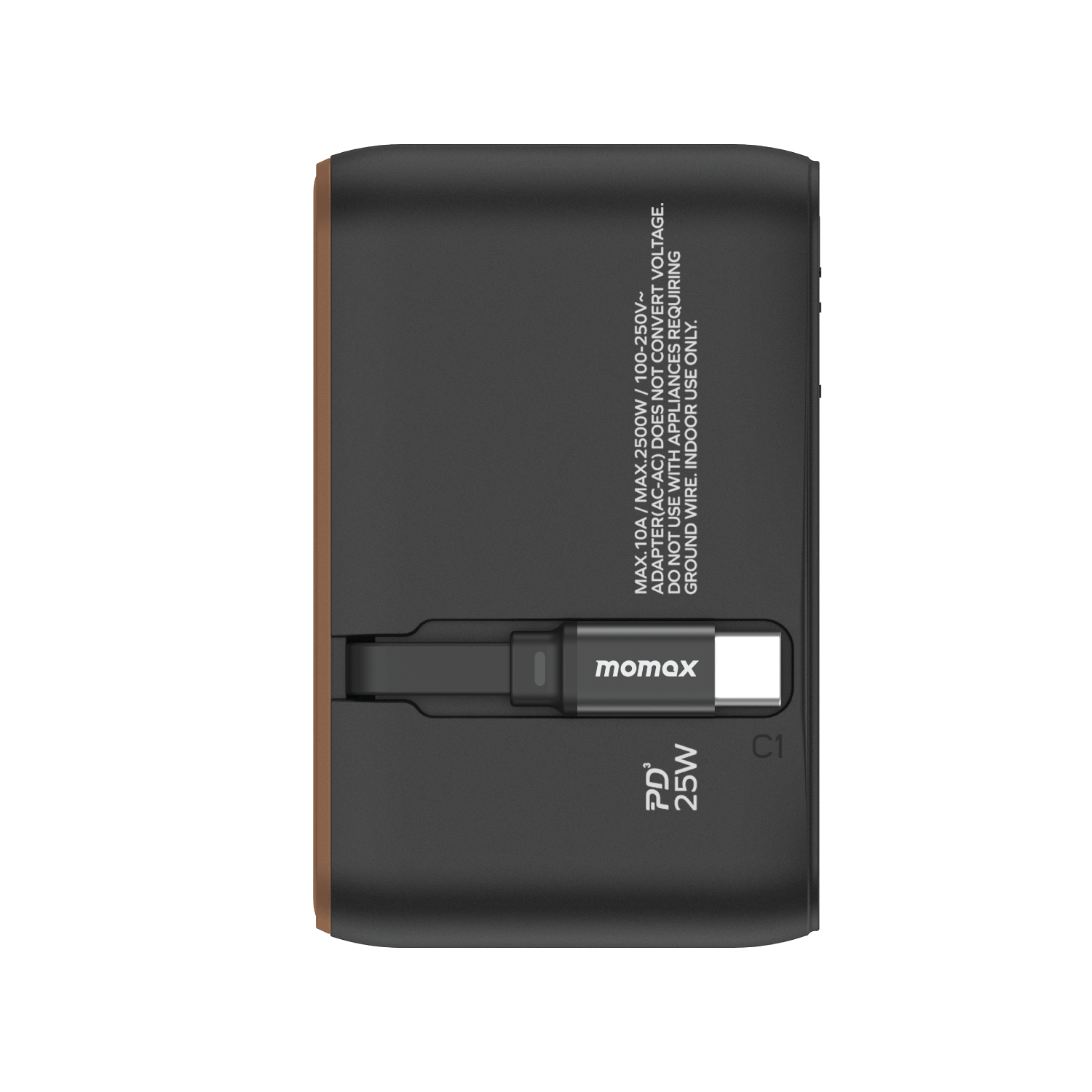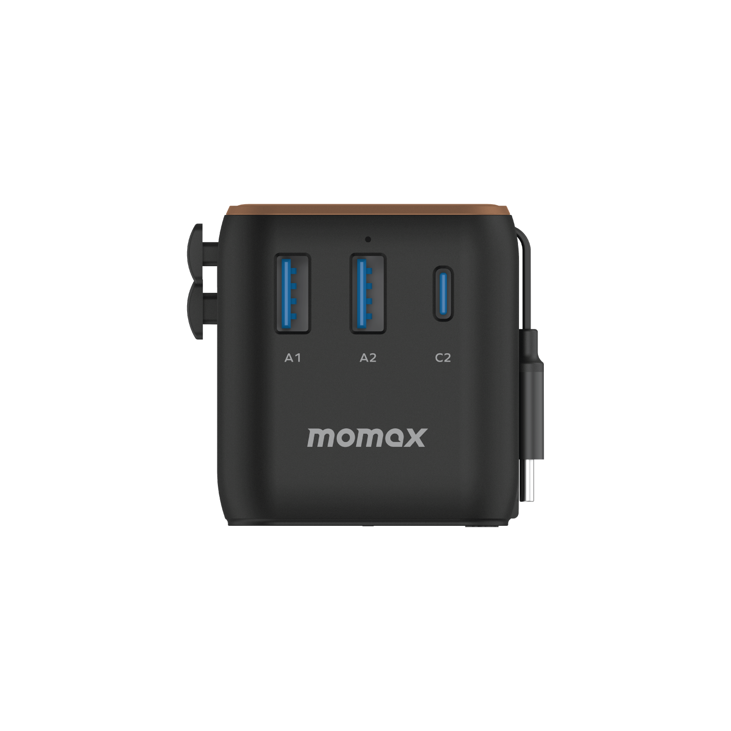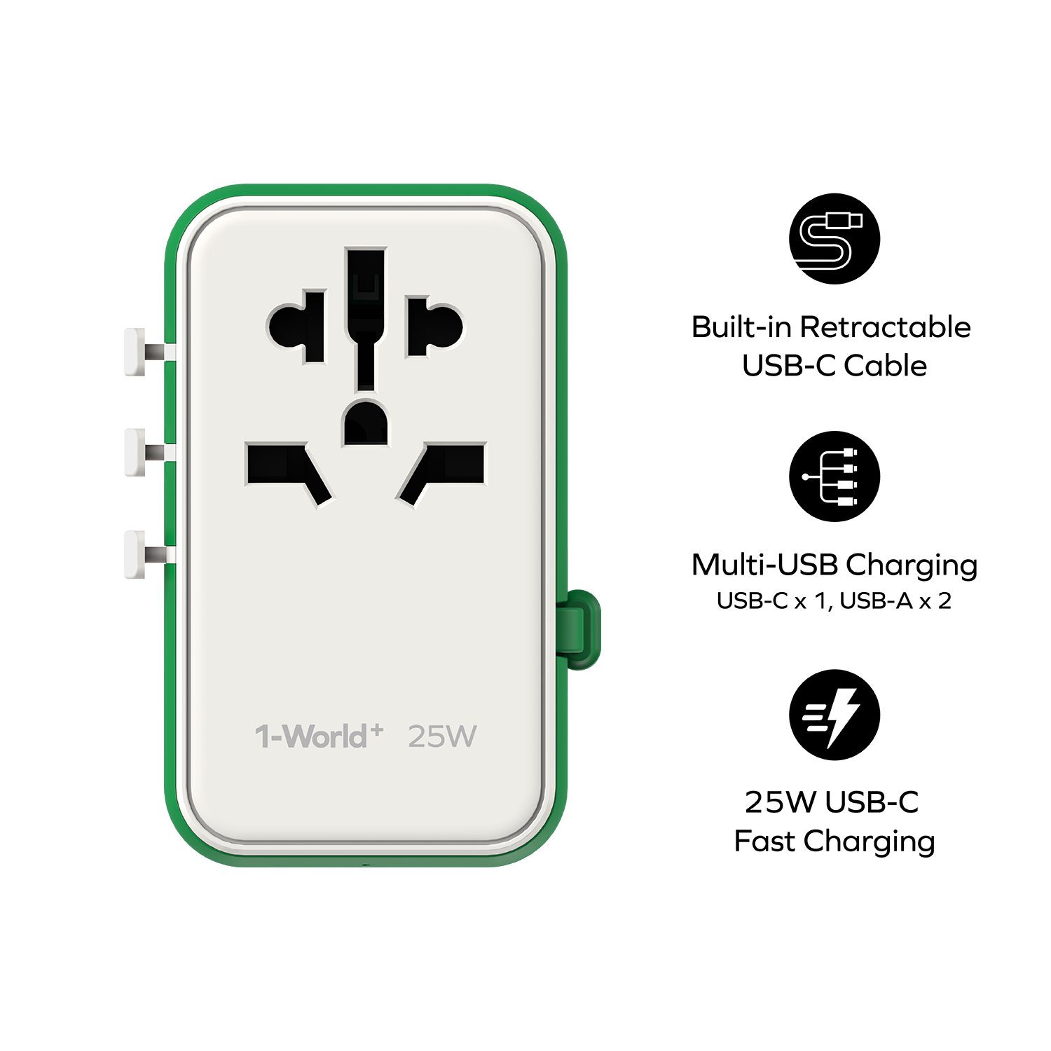 1-World+ 3-Port Travel Charger Built-In USB-C Cable 25W