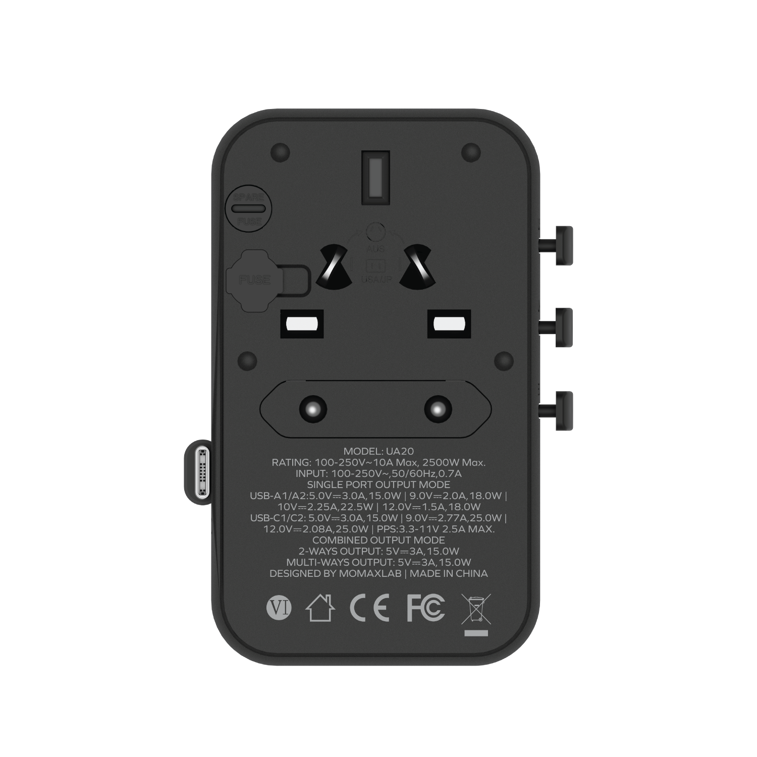 • Universal travel charger with built-in JP/US, AU, EU, UK sockets