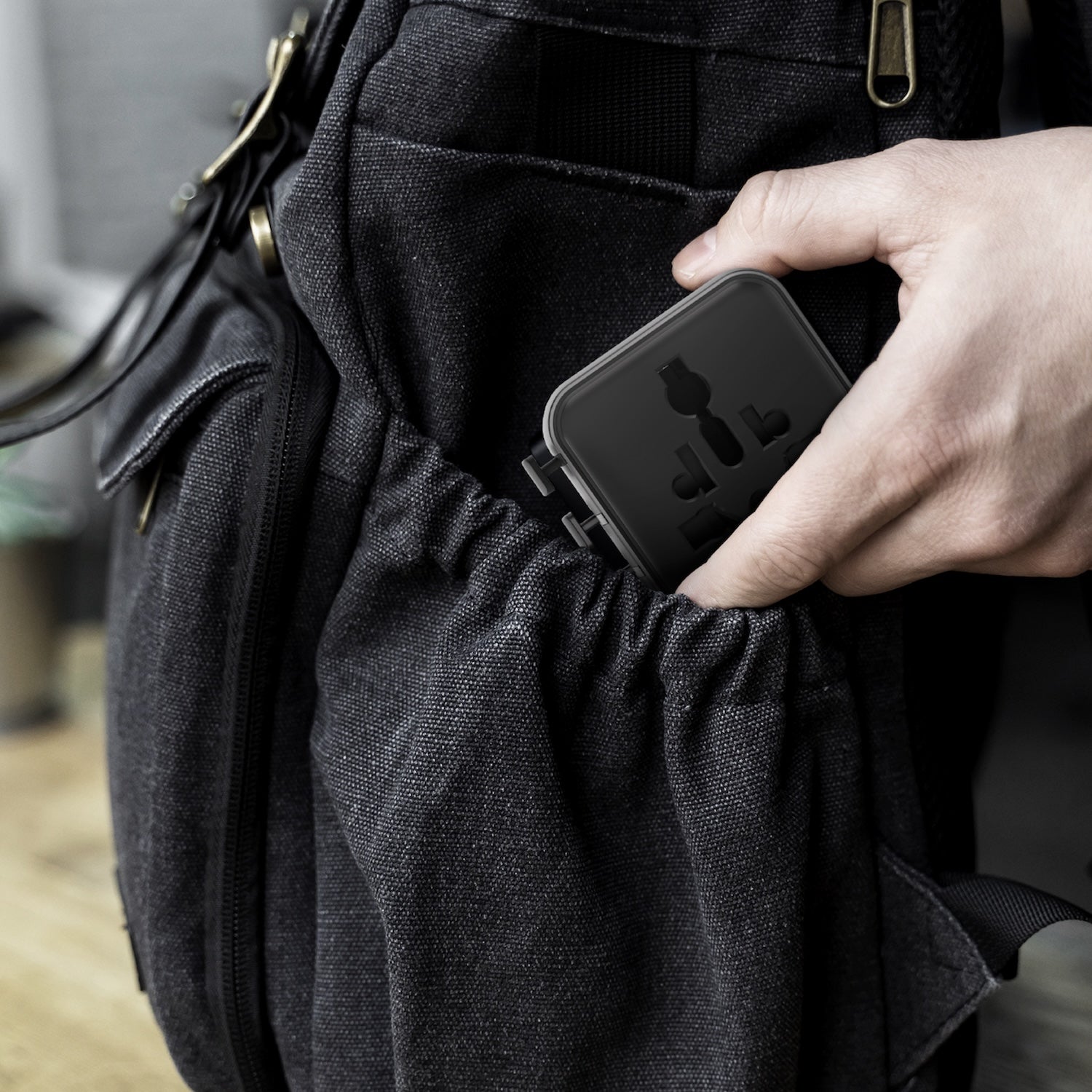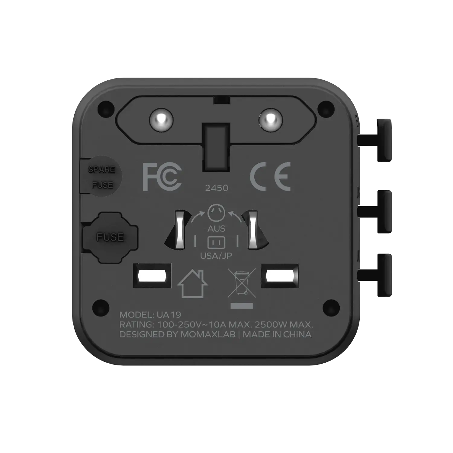 - Universal travel charger with built-in JP/US, CN, TW, UK, EU, AU sockets